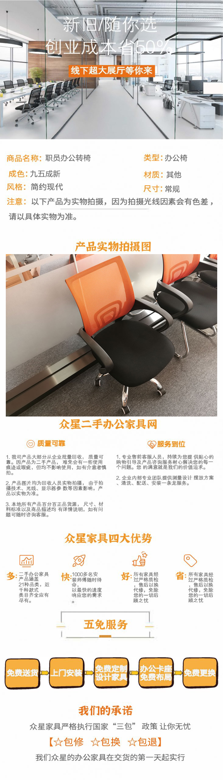 服 务:由 众星二手办公家具深圳公司 发货并提供售后服务