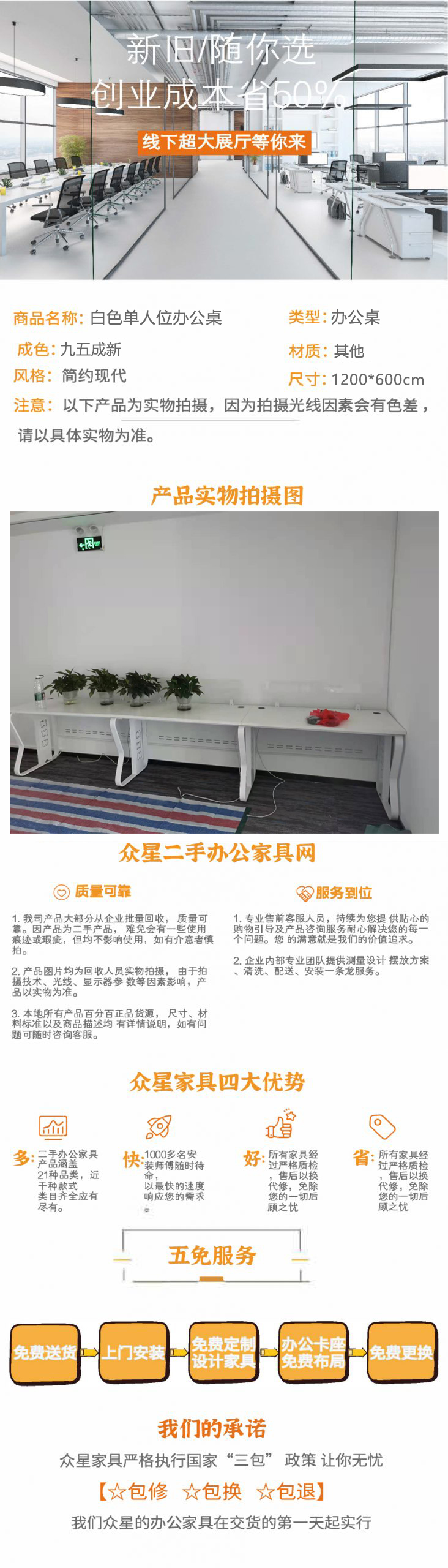 服 务:由 众星二手办公家具深圳公司 发货并提供售后服务