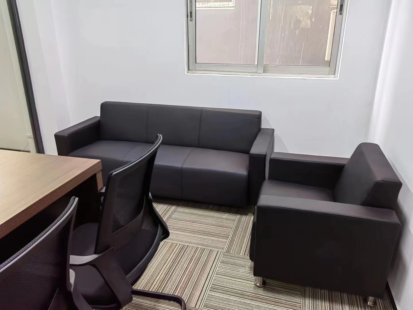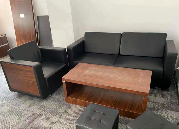 如果办公室面积小,可以选择比较体积较小的布艺沙发或实木沙发,可以腾出更多空间放置其他办公家具。如果办公室格局大,可以选择较大的两人位二手办公沙发,或者是三人人位的二手办公沙发,并且搭配合适的会客茶几。